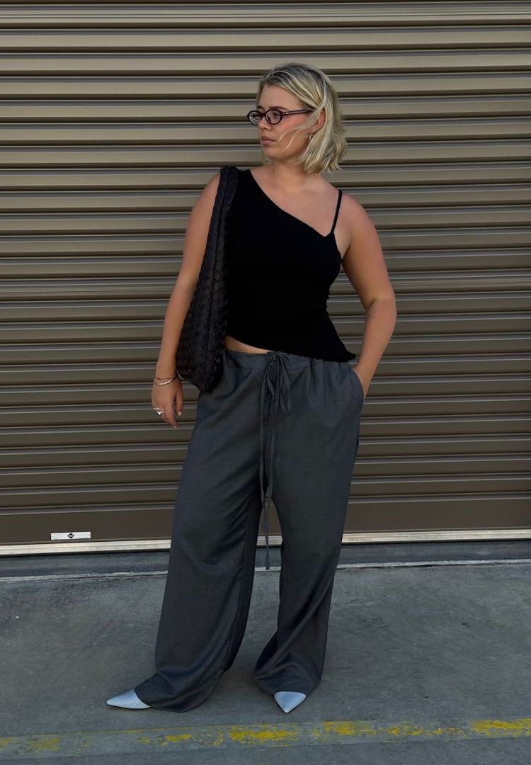 Today I’ve styled the Asym Tank and Day Bralette from Pinky and Kamal with a relaxed tailored pant from Venroy and my favourite DOF Studios baby blue kitten heels. At Pinky and Kamal, we pride ourselves on designs that are refined enough to dress up yet still functional for movement. We focus on wearable, elevated and easy-to-style staples. This reflects how I like to dress: relaxed yet elevated. I often play with styling and layering multiple Pinky and Kamal tops.