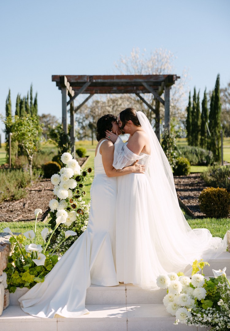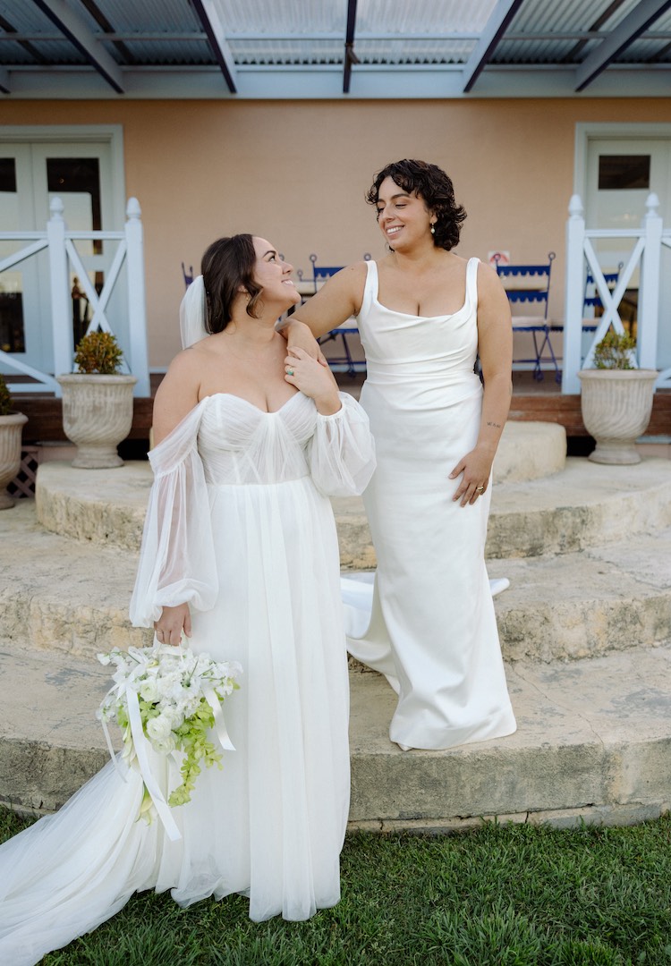 Brooke Whitten first met her now-wife, Tleiha, when they were teenagers. They grew up in parallel, attending the same parties, sharing mutual friends, but never really crossing paths. It wasn’t until lockdown hit that they properly connected, starting with socially-distanced walks. The rest, Brooke says, is history.