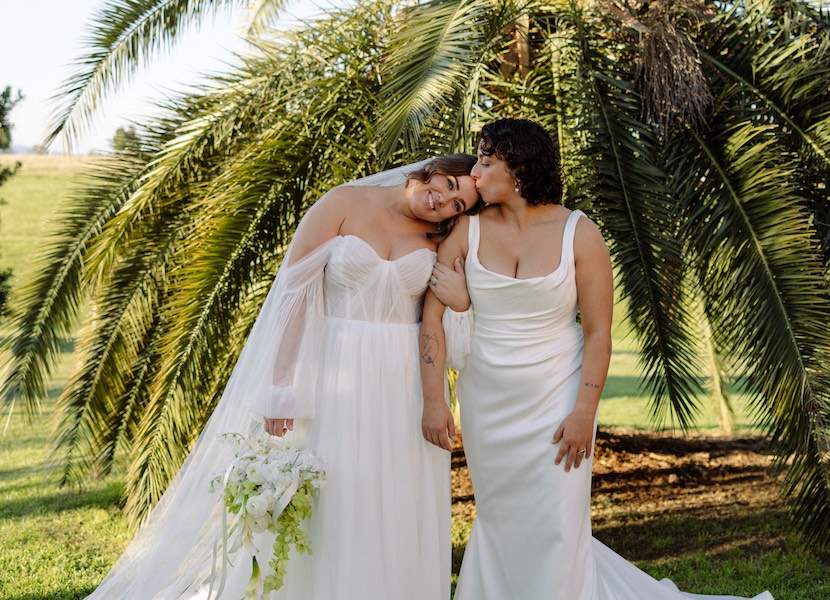 Brooke Whitten first met her now-wife, Tleiha, when they were teenagers. They grew up in parallel, attending the same parties, sharing mutual friends, but never really crossing paths. It wasn’t until lockdown hit that they properly connected, starting with socially-distanced walks. The rest, Brooke says, is history.