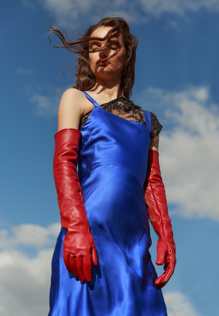 PERMANENT VACATION UTOPIA SILK DRESS $280, JORDANA HALPERIN VIRGIN MARY ETCHED, LEATHER GLOVES POA, JORDANA HALPERIN HIGH NECK LACE DRESS POA