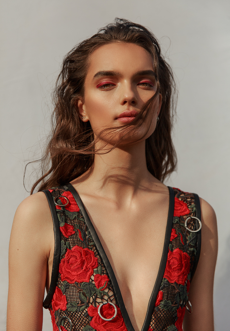 PERMANENT VACATION UTOPIA SILK DRESS $280, PERMANENT VACATION UTOPIA SILK PANTS $260, JORDANA HALPERIN VIRGIN MARY ETCHED LEATHER GLOVES POA, JORDANA HALPERIN HIGH NECK LACE DRESS POA, SOL SANA CALLIE PLATFORM $219