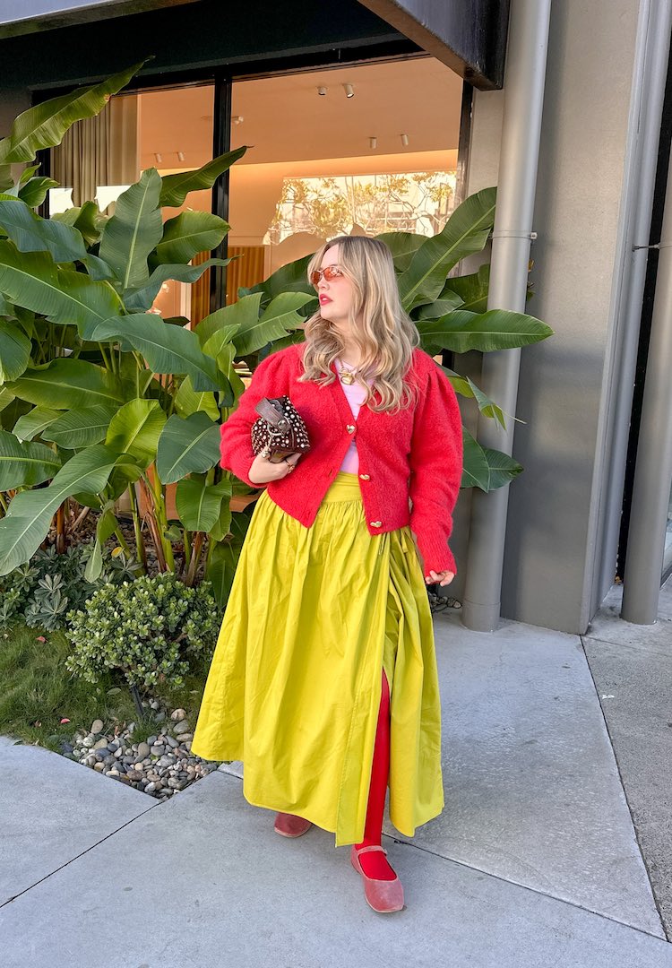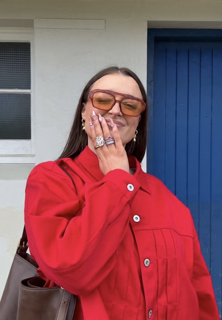 Two of my favourite red wardrobe pieces this year came in the form of accessories. My red knitted bonnet and Caitlin Snell bow bag added just the right amount of practicality and fun to my transeasonal outfits, becoming a bit of a cheat code whenever a fit was looking a little boring.