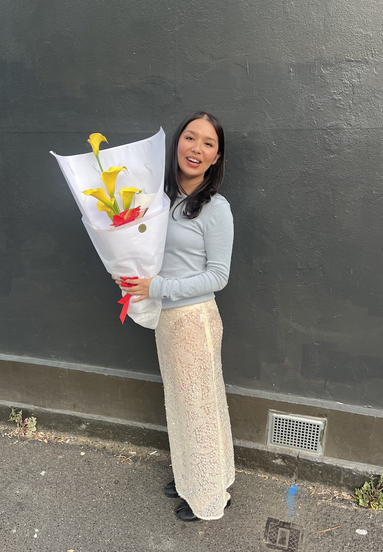 It all started with a secondhand Proenza Schouler tie-dye top that called out to me on the racks at Swop. The minute I put it on, it just felt right. Then I visited Karla Laidlaw to find something to wear to Melbourne Fashion Week, and I fell in love with her pumpkin-coloured Lulu Dress. It’s a colour that gives me energy and reels in the compliments.
