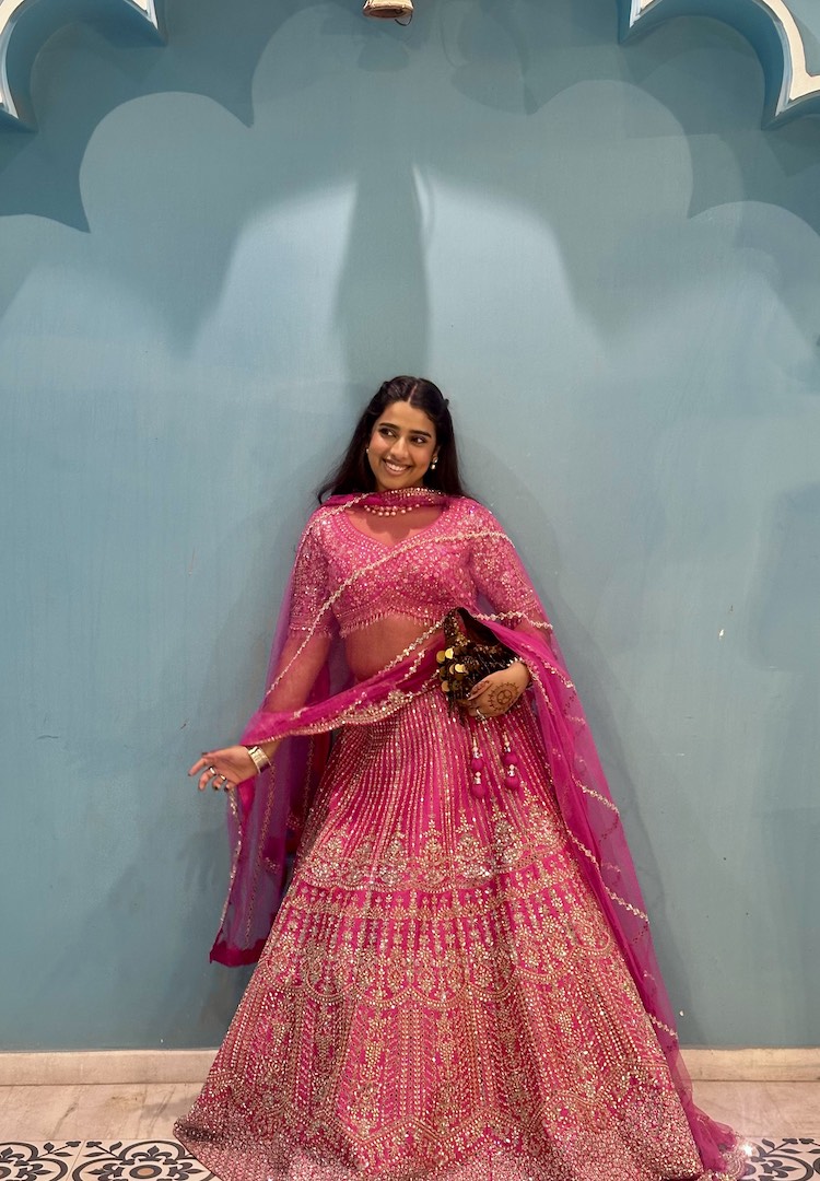 Everything from the stationary to flowers were adorned in warm pink and berry tones. I hired a traditional Lehenga in this particular shade for the wedding night. Speaking to the boutique owner, she told me that it was hand embroidered and dyed by artisans, so it felt like that specific fuchsia was truly one of a kind and carried so much history.