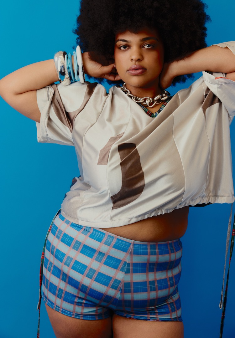 ANNIE BERRY top, KATHARINA LOU shorts, DINOSAUR DESIGNS bangles and necklace