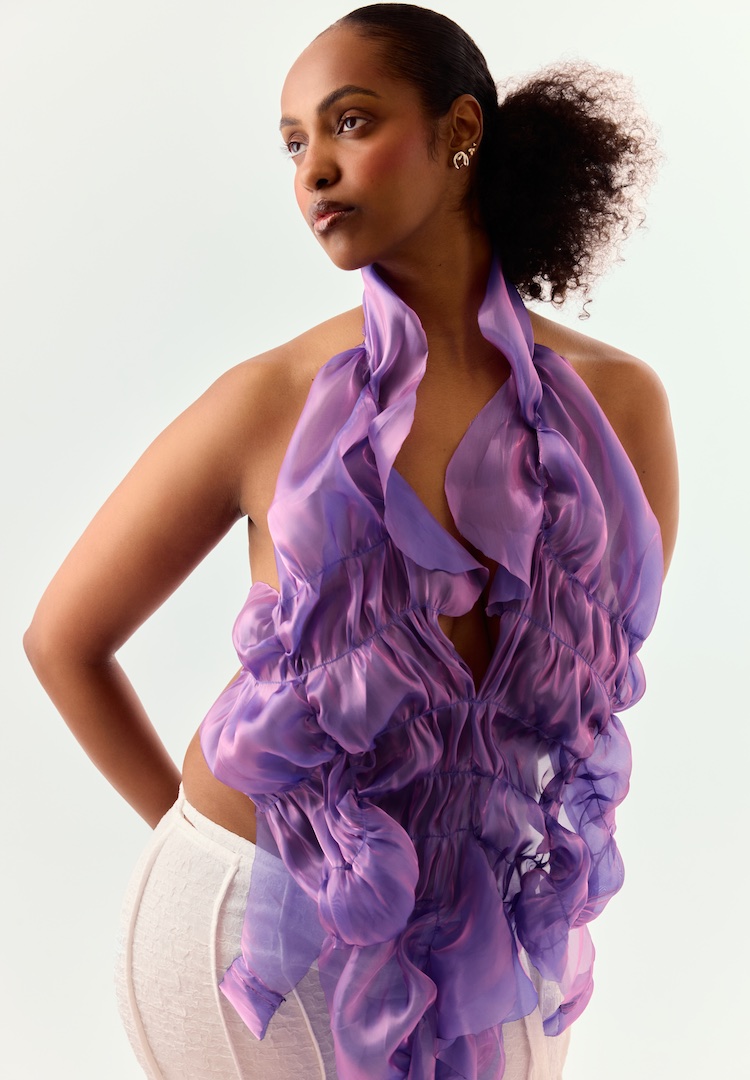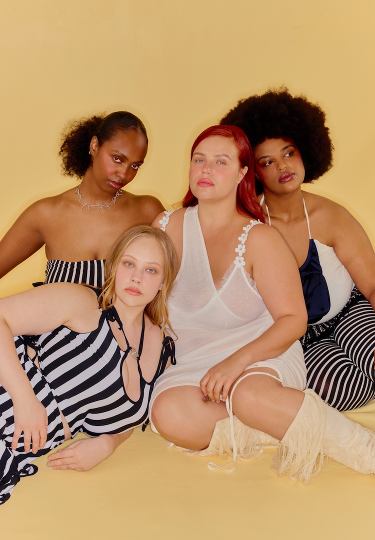 (LEFT TO RIGHT) REEM wears NIAMH GALEA dress, MARLAND BACKUS necklace LOLA wears ANNIE BERRY top and skirt BRUNA wears NIAMH GALEA dress, EMPRESS MIMI bra, AMISS shoes, DUNYA wears MAROSKE PEECH top, skirt and pants