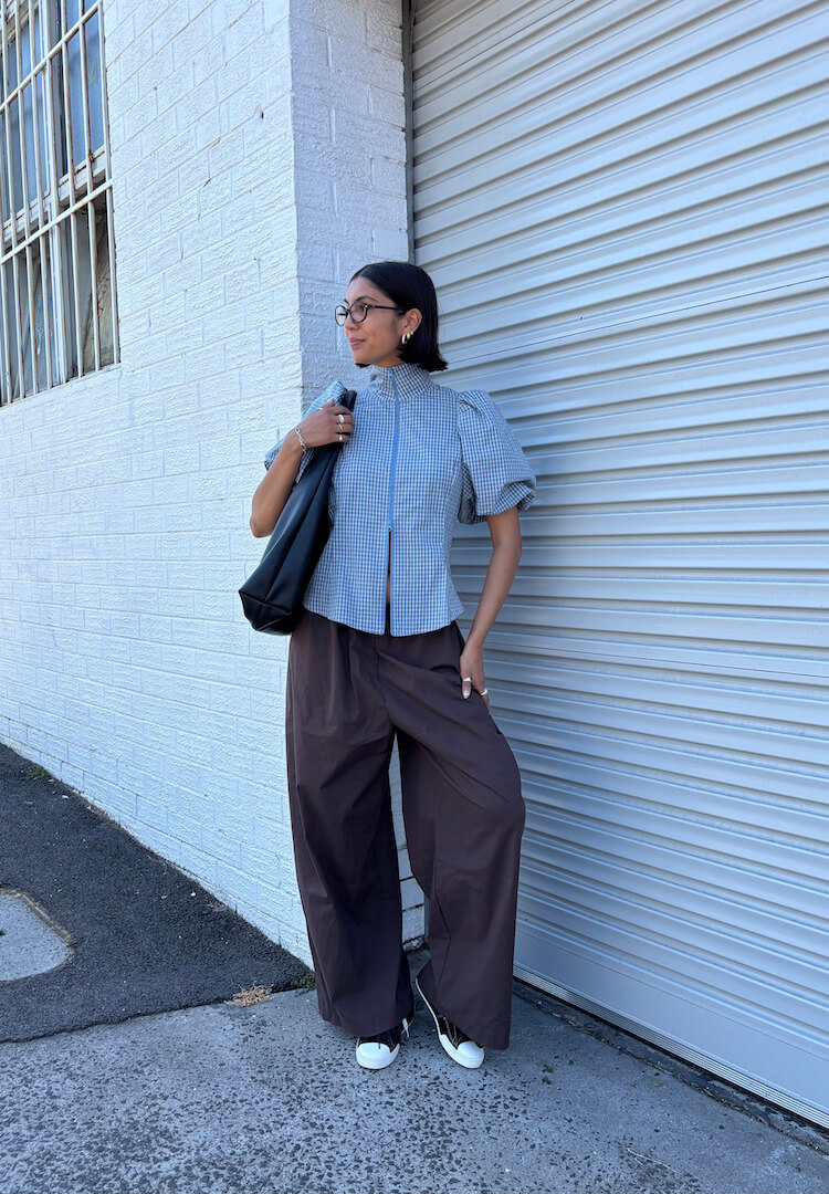 For the final outfit of the week, Ashley opted for a puff-sleeve blouse from one of her most-loved local labels, Katharina Lou. “It’s another one of those items that’s so easy to throw on when you want to look like you put a lot more effort into your outfit than you actually did.”
