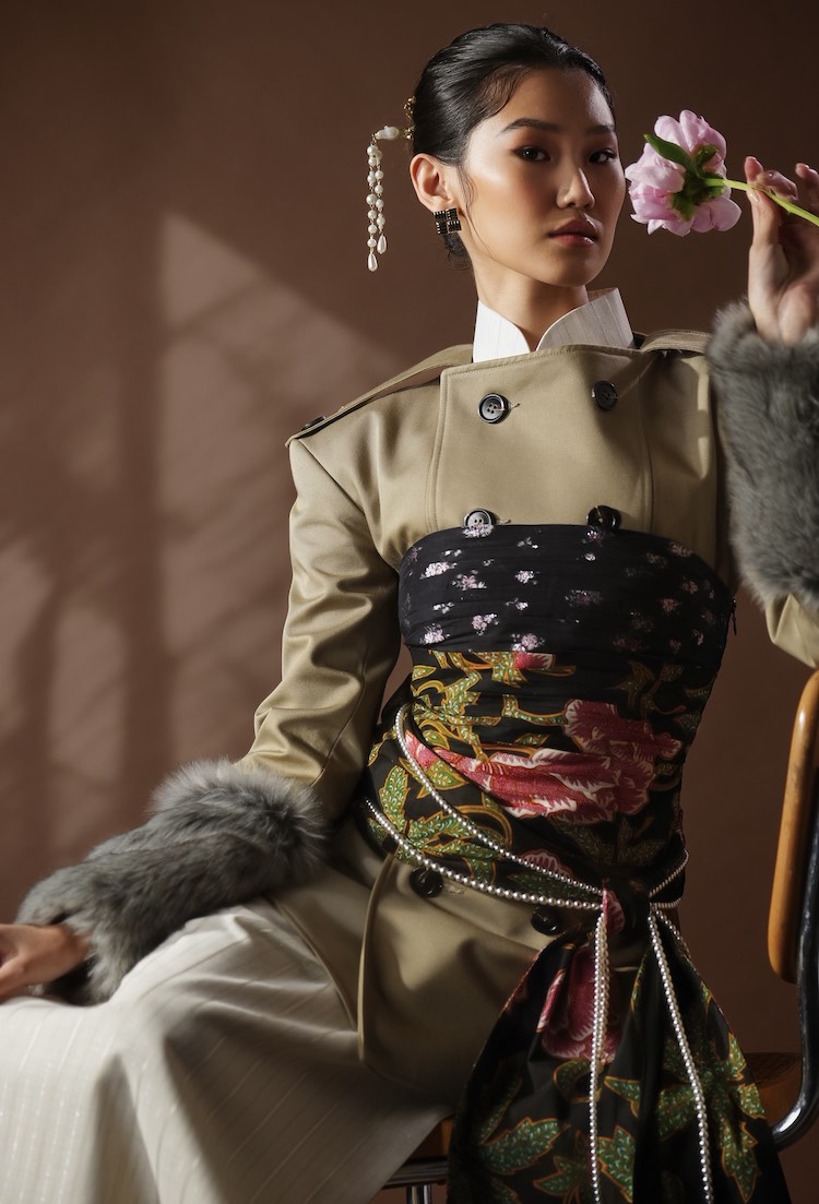 The collection unfolds like a quiet romance, telling a story of struggle, resilience, and togetherness. Structured, trench-inspired silhouettes meet traditional Indonesian batik, blending strength with softness. Rooted in my Chinese-Indonesian heritage and mid-20th-century Western fashion, the garments reflect migration, identity and the beauty that emerges when different cultures come together.