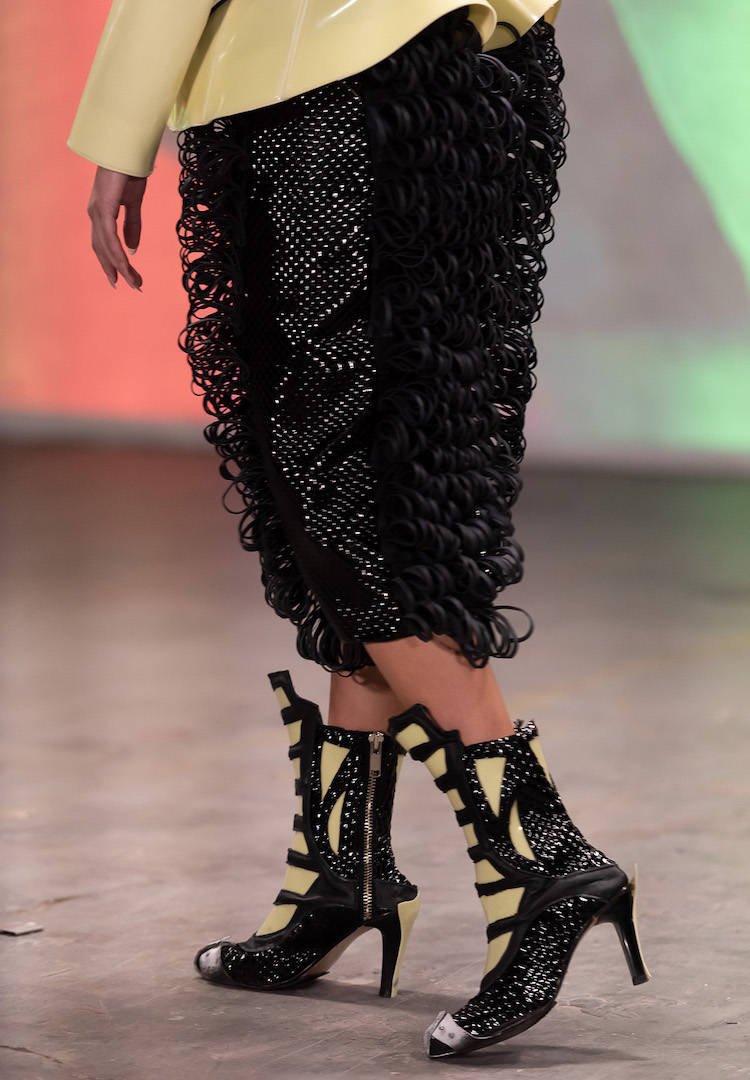 If we’re speaking more literally, it’s a variety of materials, leather, silk, wool and more, explored in a non-linear way to create non-traditional, androgynous and most of all, powerful garments.