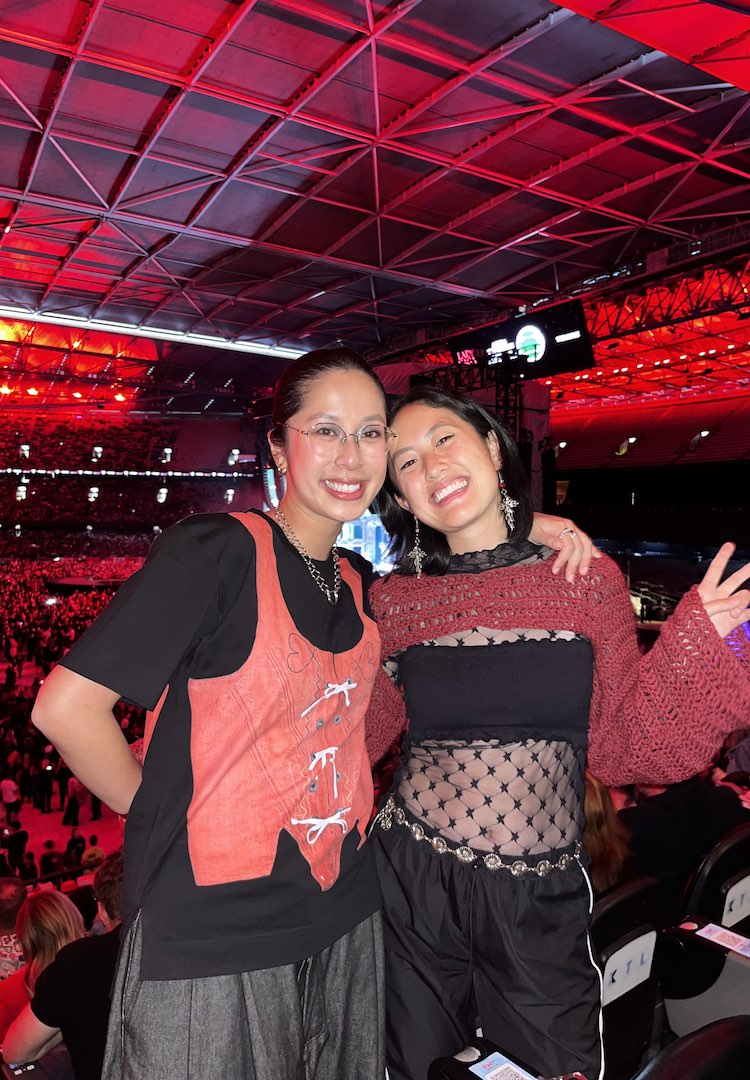 I attended both Melbourne shows so I had two outfits! For night one, I was in the pit so I had a more sensible outfit. I wore a grey tank top with an image of Lady Gaga from the Fame Monster era, and then I layered over a mesh top embroidered with the lyrics from ‘Born This Way’ from a Vietnamese brand called Datt. I paired this with my favourite jeans and sneakers from New Balance.