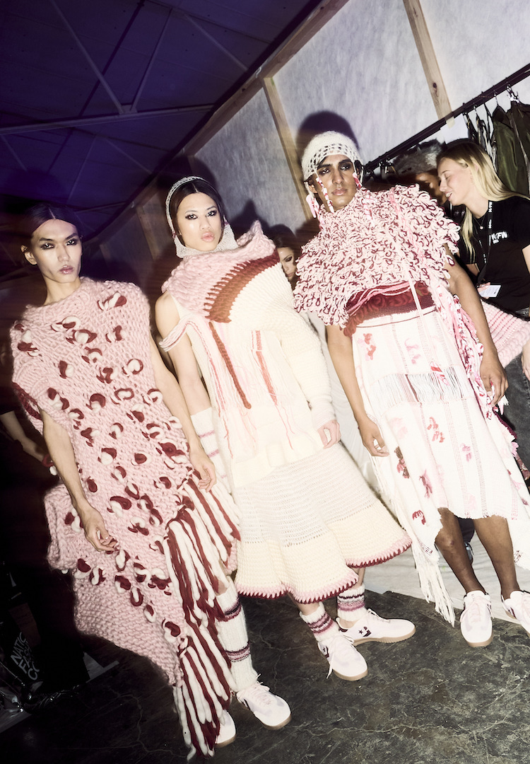 Held inside Younghusband, a converted red brick woolstore in Kensington, the M/FW producers had managed to make the back of house a star of the show. With the backstage area boxed off and smack-bang in the middle of the venue, guests took their seats around it and watched projected footage of the models lining up in their outfits for their final checks.