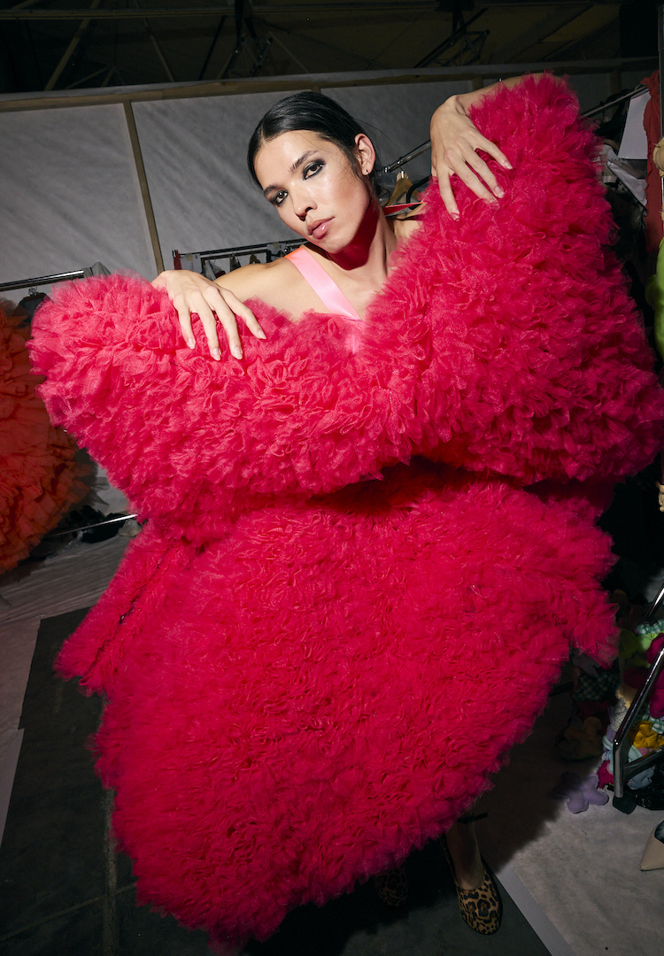 Among the many jaw-dropping looks of the evening were the ones that physically took up the most space. I almost couldn’t believe the giant loofahs of tulle by LCI student, Leah Wilkinson, who turned to topiary techniques when designing her exaggerated silhouettes.