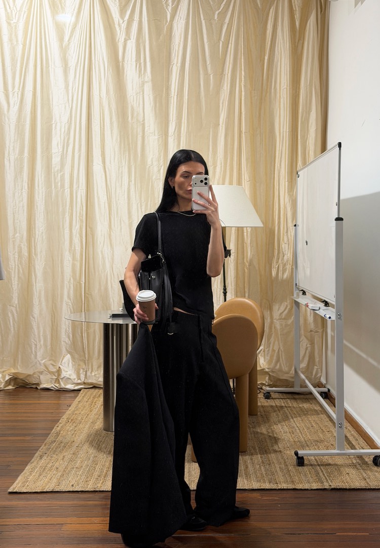 I take a season-less approach to workwear. It’s is less about the time of year and more about how pieces fit, move and wear through the day. I’m always in natural fibres, like cotton, wool and merino, and gravitate towards relaxed tailoring that feels polished but never precious. The palette stays neutral (realistically, its black most days), and I’m never without a blazer and a coffee.