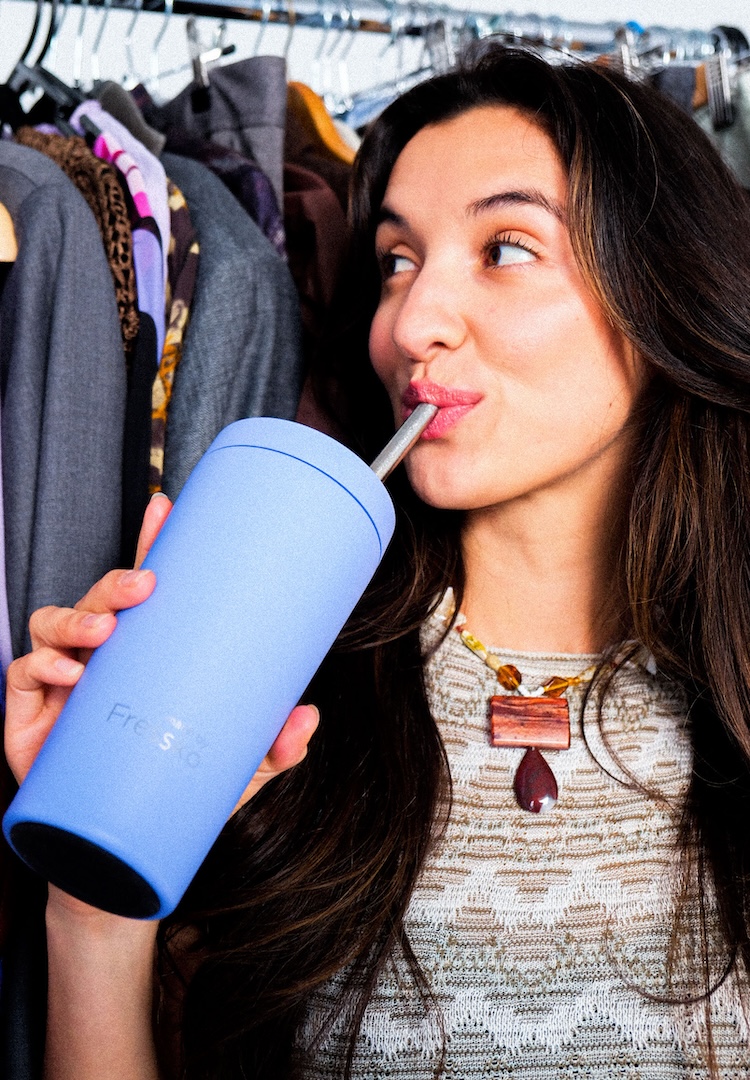 Naturally, she relies on a handful of clever products to streamline her workload. She’s recently been porting the new 20oz Venti Tumbler by made by Fressko as a close companion throughout her week, as you’ll see.