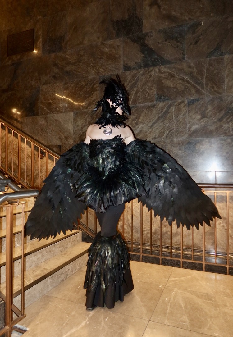 The Fantasy Ball marked my debut in the House of IMAN, where I walked ‘Bizarre x Best Dressed’, a hybrid category where wearable art meets Fashion Week. The category called for an effect based on a deity from one’s ancestry, so I drew on my Irish roots and created an Alexander McQueen-inspired look based on ‘The Morrigan’, the Celtic goddess of fate, death and war, who is often depicted as a shapeshifting raven. I got my 10s and then soared my way to the final battle.