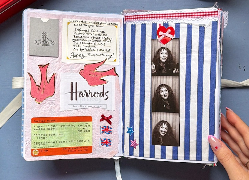 Of course, when Martina wasn’t busy creating special memories on this trip, she was junk journalling in her downtime. “I challenged myself to use the things I collected while in each city, so I didn’t come home with a whole box of unused ephemera.”