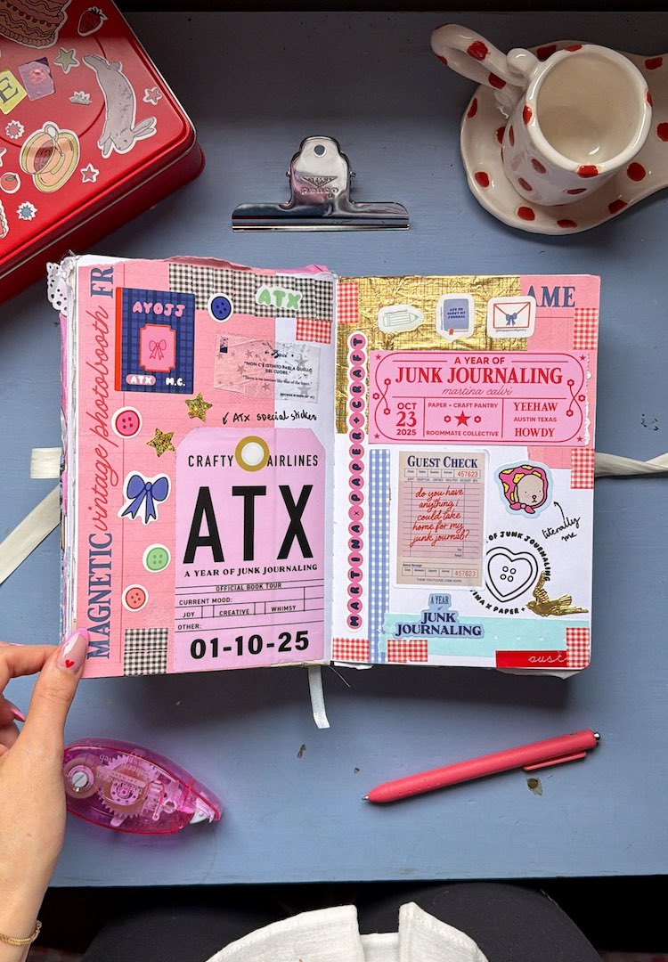 Martina has been travelling around the world for the past five weeks, touring her new book, A Year of Junk Journaling, from Paris to New York. The book tour has “really just [been] an excuse to gather our crafty community offline, so we could journal and create together,” she tells me.