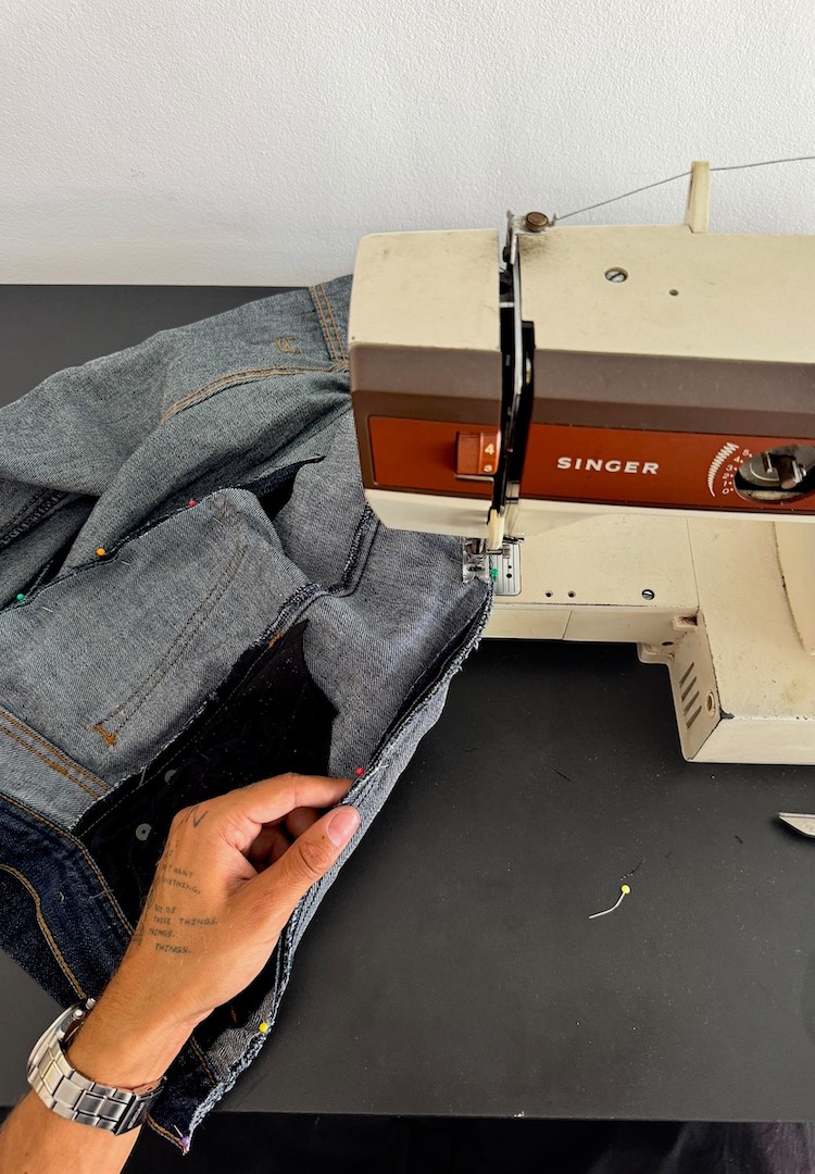 I press all the seams with an iron. Pressing helps the denim relax into its new shape and stops little bumps from forming under the topstitching. It also gives you a clear look at the actual silhouette before adding anything else. It’s such a simple step but honestly it makes the whole piece sit better.